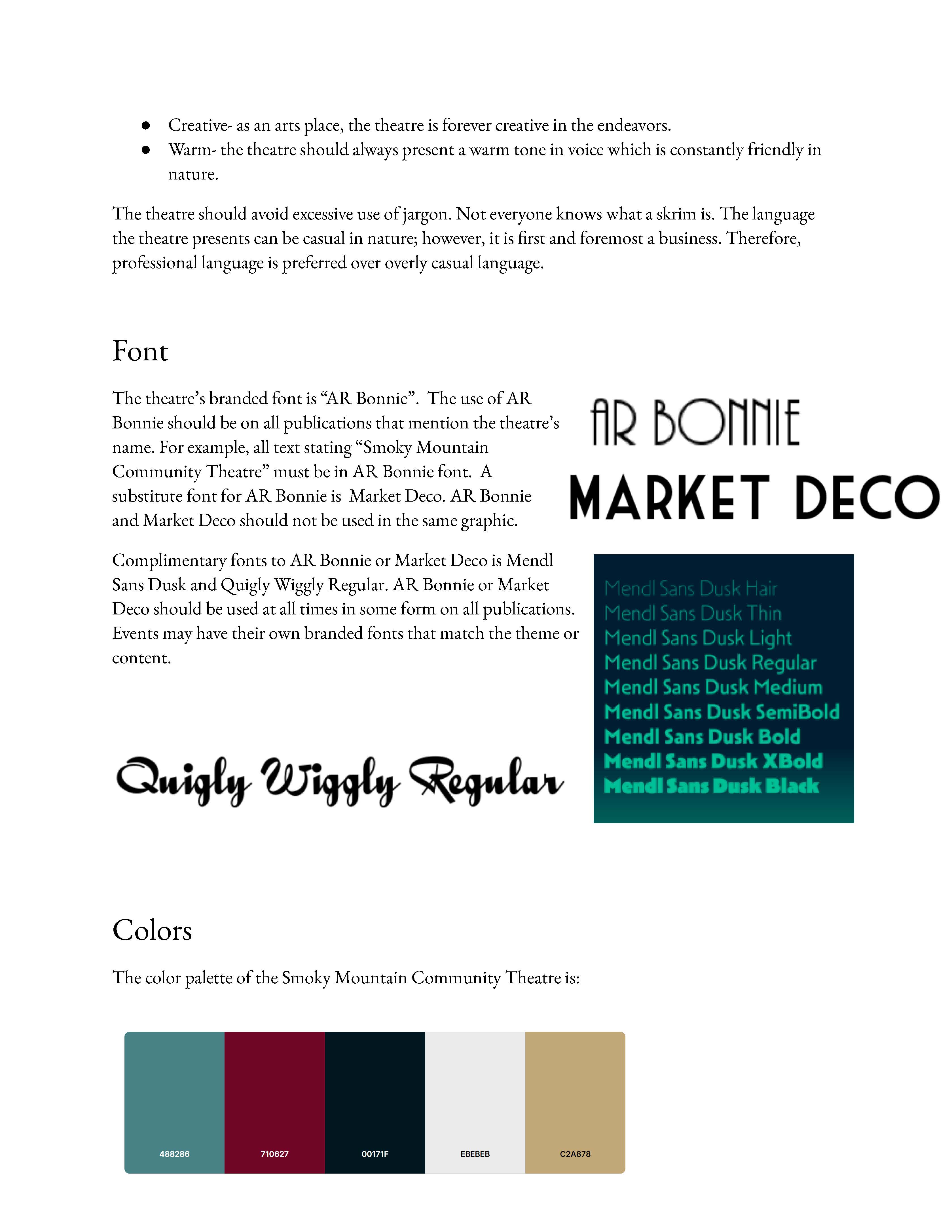 A new branding guide was created for the organization to utilize by Diane Swenson.